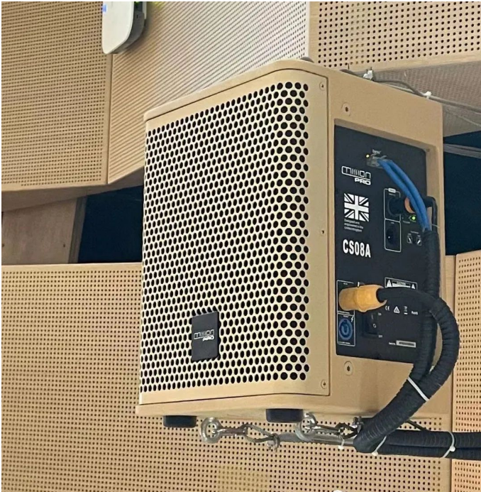 本項目采用集中式與分散式相結(jié)合的揚聲器布局方式,設(shè)備亦采用定制的外觀設(shè)計,完美融入使用場地。